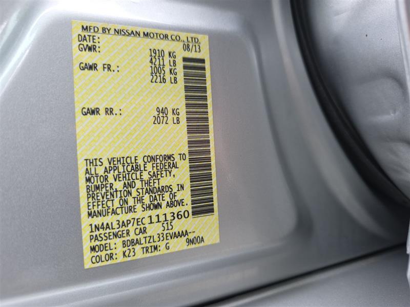 | VIN #: | 1N4AL3AP7EC111360 |