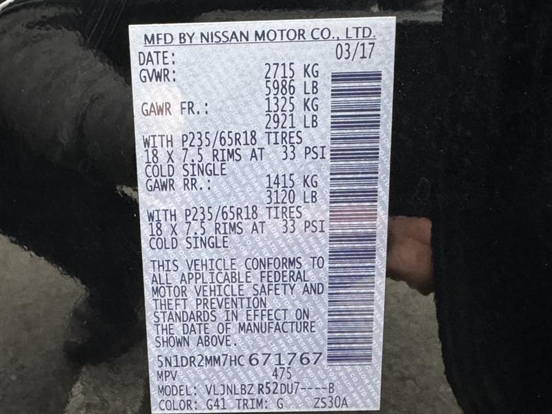 | VIN #: | 5N1DR2MM7HC671767 |